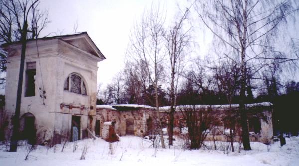 С домом были соединены переходами два скромных жилых флигеля конца XVIII века, сильно перестроенные в 1950-е годы. Флигели, "Г"-образные в плане, когда-то имели на поперечной оси нарядные павильоны, служившие для прохода в парк. Каждый павильон был увенчан деревянным бельведером с высоким шпилем.