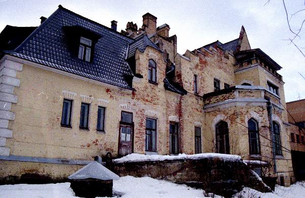 Когда-то бесспорно интересным был и другой фасад - со стороны Москвы-реки. Сейчас это задворки больницы с соответствующим антуражем.