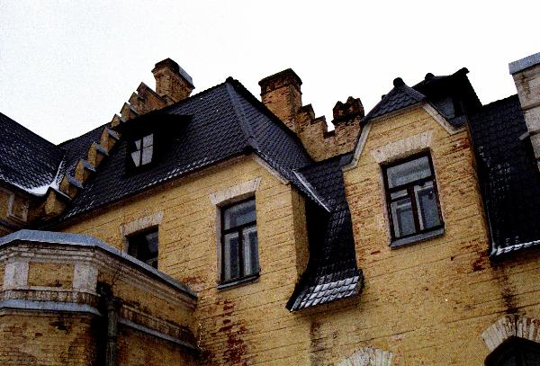 В подробностях можно рассмотреть интересную форму крыши, столь сложную и гармоничную одновременно.
