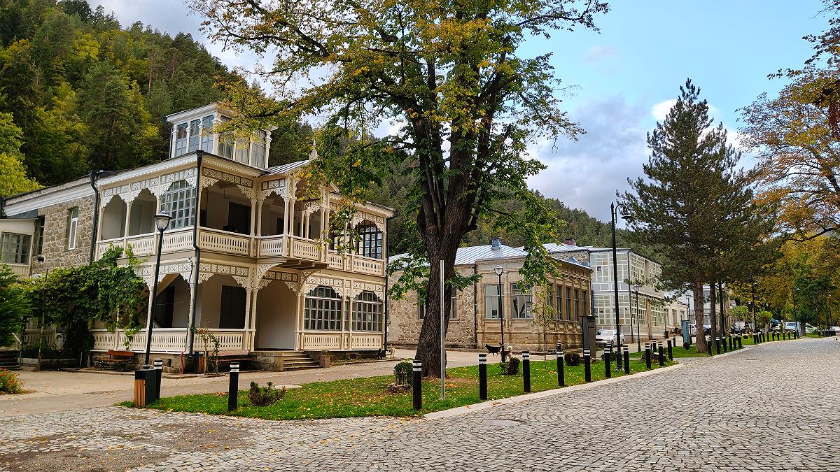 Напротив церкви, за речкой, старинные деревянные особняки знати, очень гармонично дополняющие картину спокойной абастуманской жизни.