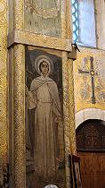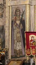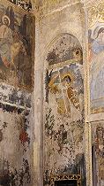 Святой Георгий тоже встречается дважды. Очень экспрессивна и выразительна фреска, изображающая Георгия Победоносца с копьем. К сожалению, ее сохранность хуже других. Со стен смотрят на нас святые покровители членов императорской семьи.