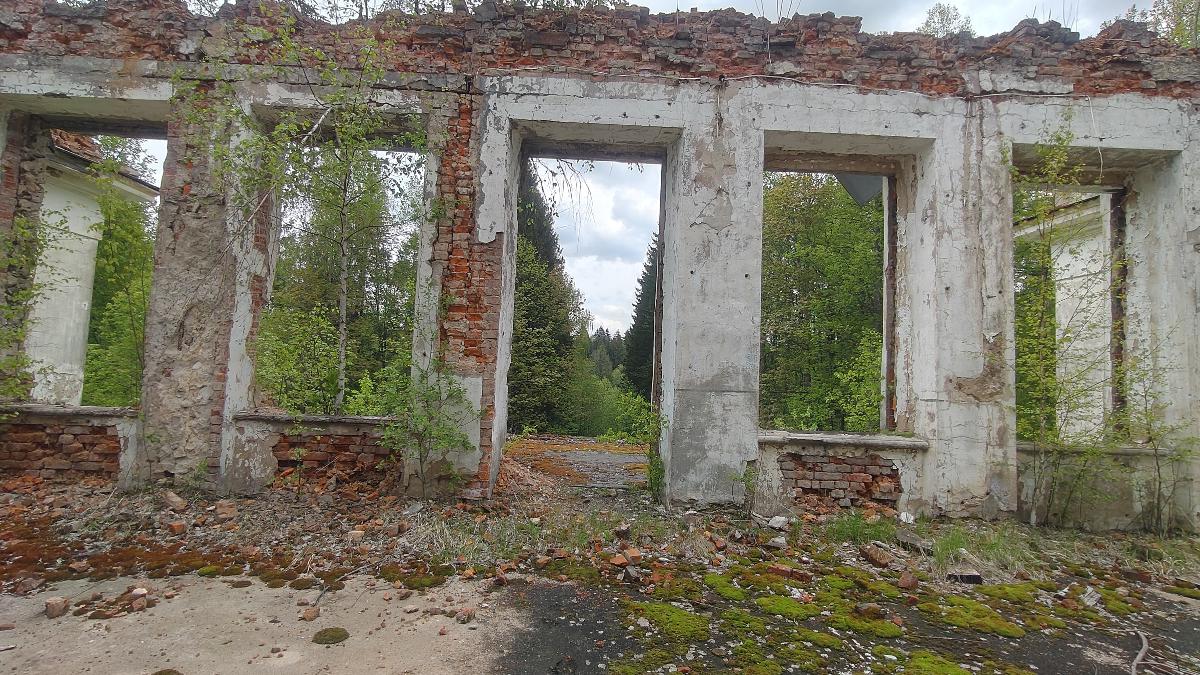 Вот здесь была дверь на террасу, и сейчас вдали угадываются очертания просеки, ведущей вниз к прудам.