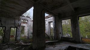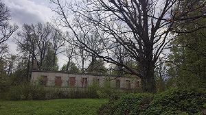 Оба флигеля вытянуты вдоль дороги. Ныне их украшают современные надписи, в том числе про рыночные отношения, приведшие к гибели местный дом отдыха.