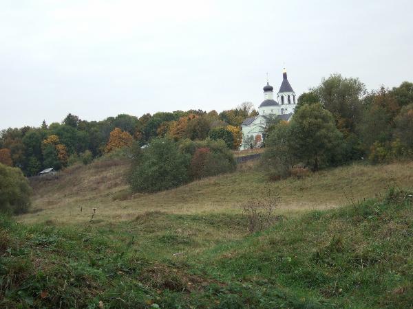 А вокруг и правда удивительно живописно: на пригорке в зелени виднеется Духовская церковь, по речке плавают гуси, вокруг просто идиллия...