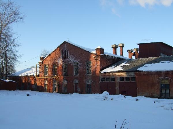 Рядом находится технический корпус кольцевого депо. Большая асть его окон растесана, и все же по нему можно составить представление о типичной пристанционной архитектуре.