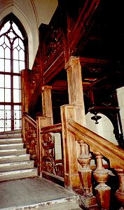 Великолепна лестница, ведущая на второй этаж. Впечатление средневекового замка усиливается стрельчатым готическим окном. После посещения дома остается впечатление удивительно органичной и естественной жизни его странных хозяев, чей мир грез и рыцарских романов был так внезапно разрушен...