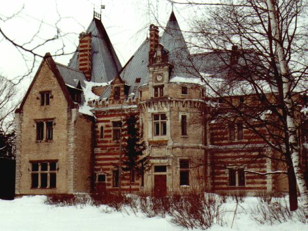 Возникновение здесь дачного поселка во второй половине XIX века связано с именем владельца соседнего села Подушкино - генерала А.Б.Казакова. Первоначально поселок назывался Самынка (или Саминка, по имени речки), к нему была проложена дорога от ближайшей железнодорожной станции Одинцово. Для своей дочери, с детства увлекавшейся рыцарскими романами, любящий отец строит деревянный замок в миниатюре на берегу небольшого пруда. Замок становится любимым местом Надежды Александровны, но это - скорее детская игрушка, чем полноценный барский дом. Намечается строительство нового большого дома, тем более, что Н.А.Казакова выходит замуж за одного из соседей - полковника Е.А.Веригина (по некоторым сведениям - владельца кирпичных заводов). Строительство дома-замка велось по проекту и под руководством П.С.Бойцова в 1885 - 1887 годах. Через несколько лет после окончания строительства хозяин замка неожиданно умер. Посланный с важными бумагами за границу, Е.А.Веригин на обратном пути уронил с корабля в море портфель с документами. Бросившись за ним в воду, он не утонул, но сильно простудился и вскоре по возвращении скончался. Вслед за мужем умер и отец Надежды Александровны. А она, как и в юности, продолжала жить в мире грез и рыцарских романов. Владелице настоящего замка недоставало только титула, и в 1904 году Н.А.Веригина вышла замуж за небогатого отставного офицера Б.Е.Майендорфа (Мейендорфа), который носил титул барона. Так наконец Надежда Александровна стала баронессой со своим замком.