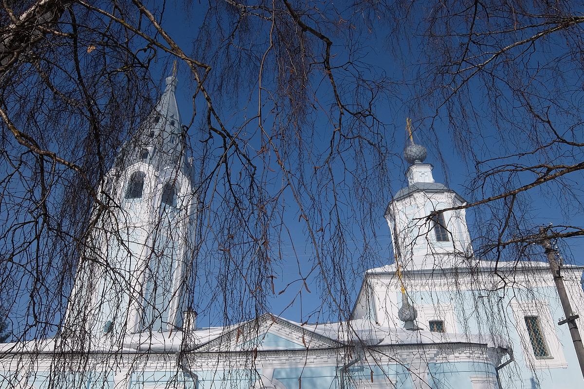 Шатровая колокольна храма издали привлекает внимание. Здание церкви украшено пилястрами, фигурными карнизами и наличниками.