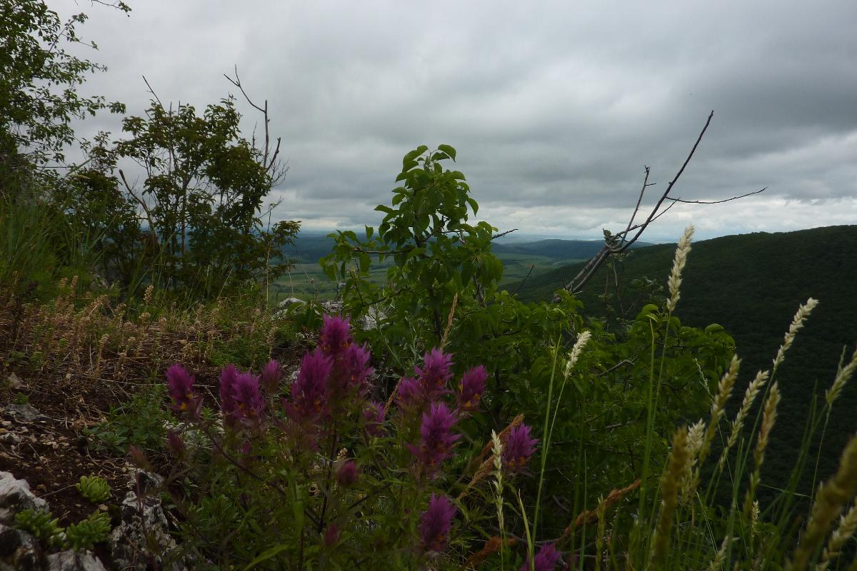 После довольно долгого подъема тропа выводит на скалистую вершину горы, поросшую лесом и цветущими травами.