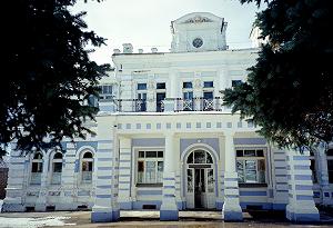 Это и есть усадьба знаменитого булочника Д.И.Филиппова, который обосновался здесь в начале ХХ века. Мало что сохранилось от тех времен: фрагменты старого парка, да двухэтажное здание, в формах.. то ли эклектики, то ли уже неоклассики. Даже затруднительно однозначно охарактеризовать это необычное строение. Предположительным автором проекта считается архитектор Н.А.Эйхенвальд, с 1904 года производивший строительные работы у московского булочника. Среди известных работ зодчего можно назвать оформление интерьеров кофейной Филиппова в гостинице "Люкс" и участие в перестройке гостиницы. Кафе было оформлено в стиле модерн с использованием живописи (художник П.П.Кончаловский) и скульптуры (скульптор С.Т.Коненков). Вероятно, на Н.А.Эйхенвальда произвела впечатление выставка "Современного искусства", прошедшая в С.-Петербурге в 1903 году, призванная пропагандировать новые веяния в искусстве, архитектуре, оформлении интерьеров. Дармштадские выставки (особенно произведения Й.-М.Ольбриха) и деятельность самой Дармштадской колонии художников также оказали определенное влияние на работы архитектора. Строил ли Эйхенвальд загородный усадебный дом Филиппову, с точностью сказать невозможно, но интересное архитектурное решение, вписанность в пейзаж, выдают руку неординарного мастера. Здание смотрится как игрушка, в лучшем смысле этого слова.