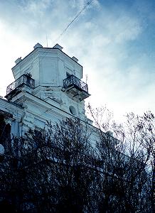 Однако, если взглянуть вверх, можно увидеть симпатичные детали. Довольно выразительна угловая башенка с балкончиками.