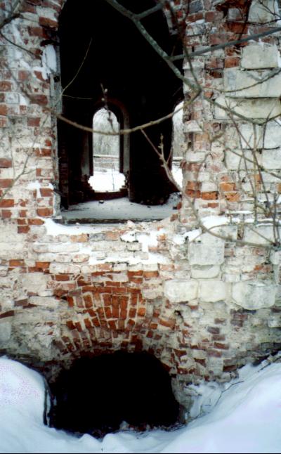 Когда-то под небольшой бесстолпной трапезной был устроен полуподвал для родовой усыпальницы. Ныне он завален битым кирпичом и мусором.