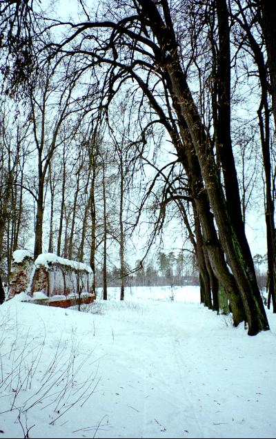 Между церквями и самой усадьбой - обширный парк. Когда-то этот французский парк был обнесен каменной оградой с четырьмя псевдоготическими башнями. Впереди - спуск к громадному пруду с восемью островами.