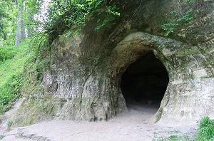Спустившись с холма, можно пройти чуть дальше и осмотреть пещеру. Вход в нее находится у подножия соседнего холма и обозначен специальной табличкой.