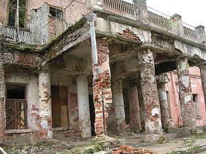 Ивановское-Безобразово - странная усадьба. Мало какая усадьба в Подмосковье созранилась так хорошо, и в то же время, так плохо, как эта. Мы можем видеть целый архитектурный ансамбль (главный дом, жилые флигели, церковь, восточный и западный служебные корпуса, служебные постройки, водонапорную башню, погреб, ворота), и почти все постройки - в ужасающем состоянии. Они разрушаются буквально у нас на глазах.