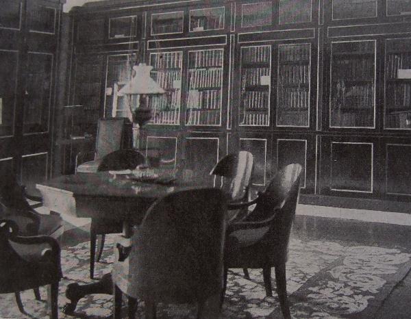 Но главной гордостью была библиотека известного историка литературы, библиофила М.Н.Лонгинова, для которой его потомки пристроили отдельную комнату с книжными шкафами из красного дерева, украшенные бронзой. К счастью, перед революцией библиотеку, состоящую из 6000 томов, решено было передать Пушкинскому Дому Академии наук.