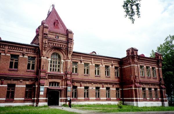 Пожалуй, самой выразительной постройкой кирпичного стиля в Калязине можно считать корпуса Механико-технического училища (1903), оказавшиеся на самом берегу водохранилища, но, тем не менее, и не затопленные.
