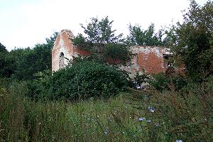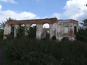 Рядом - руины флигеля или иной хозяйственной постройки. Пока еще стены здания стоят... Отсюда тропинка идет наискосок в сторону конного двора.