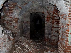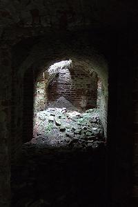 Побродив по развалинам обнаруживаешь, что осталось еще кое-что от дома: полуподвальный этаж, цоколь. Так что пока есть возможность "войти в дом" и совершить прогулку по родовому гнезду Чичериных. Грустную прогулку...
