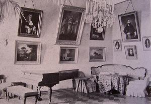 На специальных открытых "горках" был выставлен саксонский сервиз с вензелями Екатерины II. Стены украшал "Мужской портрет" школы Веласкеса, "Наказание Марсия Аполлоном" школы Веронезе, "Снятие с креста" Пальмы Младшего, картины П.Насона, Г.Терборха, В.А.Тропинина, В.К.Шебуева, И.К.Айвазовского, Ф.А.Васильева, В.А.Серова.
