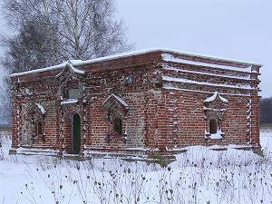За мостиком через Бабенку развилка: правее вдоль Оки идет одна дорога, левее круто вверх - другая. Нам, разумеется, по левой дороге (говорят, она булыжная, но под снегом не было видно). Подъем очень крутой и затяжной, проходит как будто по дну оврага, разъехаться со встречными можно только в одном месте, рекомендуется сигналить на поворотах. Впрочем, на переднеприводной машине сюда только летом, зимой можно и не пробовать (даже заднеприводные "Жигули" взяли высоту со второй попытки, хотя, может быть, сказывалась скользкая "плюсовая" погода). Поднявшись наверх, надо было попасть на соседнюю улицу, и мы сделали это по единственному переулочку (поворот - путевая точка KASI02), где были хоть-какие то автомобильные следы. Доехав до соседней (Малоокской) улицы (точка KASI03), обнаружили на ней снежную целину и пошли уже пешком. Это тоже своеобразная улица-овражек, за краем селения последний "рог" этого овражка врезается в поле, на котором и стоит текие Авган-Мухаммед султана, совем близко от последних домов. Идти от машины оказалось недалеко, минут пять, даже с учетом снежной целины. Мы не уверены, что описанный путь подъезда оптимален летом, в частности Дмитрием Мокеевым (2002 г.) описан маршрут по первой, Старопосадской, улице (на которую выводит подъем) до выезда за пределы селения, и дальше налево по грунтовке. Но зимой вариантов не было.