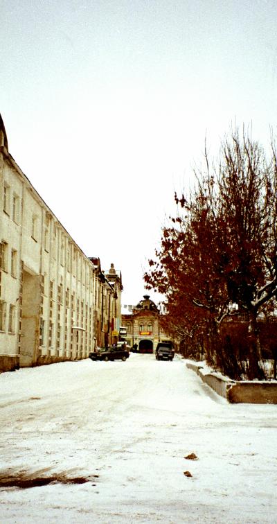 Кстати, чуть повыше за голубым домом - вполне традиционный фирменный магазин "Вереск", представляющий немалый интерес для поклонников продукции одноименного кашинского ликеро-водочного завода (ассортимент здесь очень разнообразен - от широко известной "клюковки" до бальзама "Старый Кашин" и "Верескового меда"). От магазина открывается вид на центральную Троицкую площадь, немного лысоватую, т. к. соборы были взорваны в 1936 году.