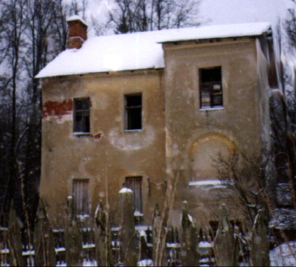 Сейчас главный дом не сразу и узнаешь. Утрачена вся правая часть, так что облик фасада совершенно изменился. Перед домом, вместо большого круга елей и берез, деревенская улица. А чуть дальше, за домами, как прежде, большой пруд на речке Мергель.