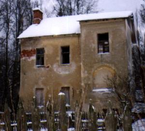 На берегу пруда - видавшая виды обжитая постройка, похожая на описанное М.В.Сабашниковым здание, первоначально отданное под школу в Костине - "старое каменное двухэтажное здание конторы, к которому была сделана двухэтажная же деревянная пристройка, вмещавшая большую классную комнату и квартиру учительницы."