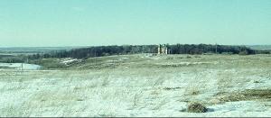 Среди долин и полей издалека виден красивый силуэт Казанской церкви на фоне лесного массива. На самом деле это не лес, а пейзажный парк с прудами в усадьбе А.П.Ермолова.
