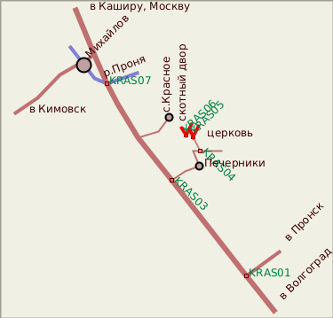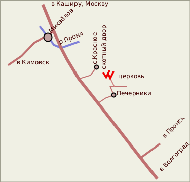 Найти в Рязанской области усадьбу А.П.Ермолова Красное - не так то просто. Есть на карте село Красное, есть - Красная Горка... На самом деле, чтобы попасть в этот удивительный уголок Рязанской земли, нужно послушаться указателя со своеобразной надписью "г.Красное". Вокруг поля, пригорки и долины, и вдруг на горизонте - величественный храм на фоне столь редкого здесь леса. Это не мираж. Здесь находится бывшая усадьба фаворита Екатерины Второй Александра Петровича Ермолова (1754-1836).Знаменитого полководцу А.П.Ермолову он приходился двоюродным дядей (в литературе из-за одинаковых инициалов иногда наблюдается путаница)