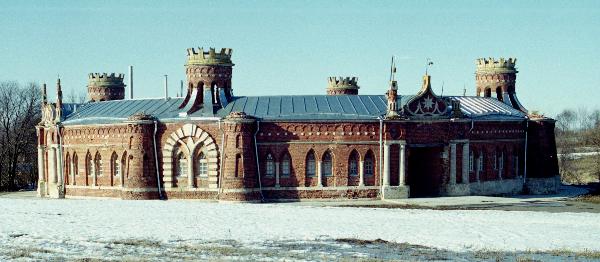 Самая главная достопримечательность ермоловской усадьбы - конечно же, скотный двор. Какая игра фантазии! Абсолютно круглая в плане игрушечная крепость в псевдоготическом стиле совсем не похожа на "скотный двор".