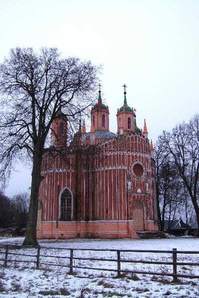 При сооружении кирпичного здания церкви был использован для отделки белый старицкий камень. Храм изящно декорирован характерными для готики острыми башенками-пинаклями. Башенками с острыми готическими шпилями украшены и купола церкви. Поверхность стен разделена узкими вертикальными тягами, стрельчатыми арочками и высокими стрельчатыми окнами. Круглое окно над входом напоминает "готическую розу".
