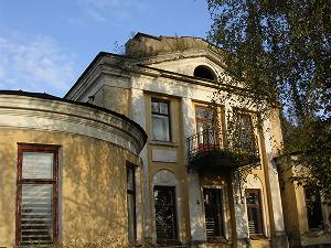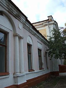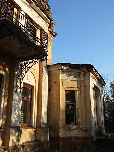 Основной объем здания украшен балкончиком с чугунной оградой, его поддерживает ныне лишь один кронштейн. Да и на крыше потихоньку прорастают деревья.