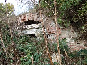 Прямо под домом, чуть ниже в репьях и борщевиках - заваленный грот, служивший местом отдыха прежним хозяевам. Школьники, видимо, тоже отдыхают здесь.