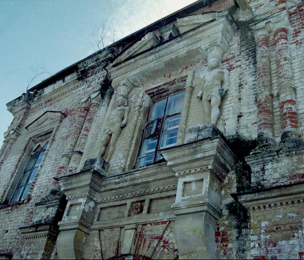 Да и наружная отделка довольно оригинальна, если не сказать удивительна. Чего стоят одни фигуры египтян, подпирающих портик.