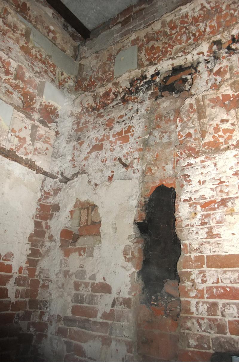 Слабо заметны чудом уцелевшие куски крупной кафельной плитки, которой были выложены когда-то огромные печи. Мебель Храповицкий заказывал у Шмидта, тестя архитектора Бойцова.