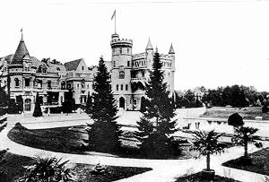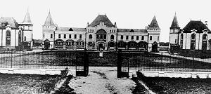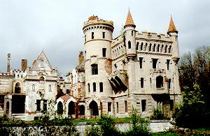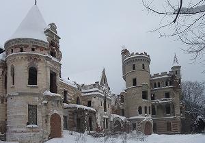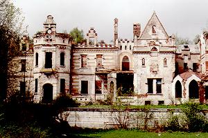 По преданию, Владимир Храповицкий, путешествуя по Франции в 1880-е годы, был в восторге от средневековых замков. На замечание французов, что в России ничего подобного нет, Храповицкий нашел своеобразный ответ: он заключил пари, что построит замок. Пригласив через несколько лет французских друзей в свое имение, хозяин продемонстрировал удивленным гостям не просто замок, а "готический" дворец с парком и каскадом прудов у главного дома. Так возник этот великолепный ансамбль, поражающий и поныне своим размахом и удивительной свободой пространственного решения. Не поворачивается язык назвать это "эклектикой" (хотя этот термин прочно укоренился применительно к постойкам данной эпохи). Изощренность и даже причудливость композиции совершенно не разрушает целостность восприятия, наоборот, создает впечатление гармонии. Блестящие готические стилизации архитектора П.С.Бойцова, хотя формально и остаются в рамках эклектики, во многом близки только зарождавшемуся в то время модерну. В особенности это относится к стоящему чуть поодаль конному двору, или, лучше сказать, конному дворцу, поскольку по масштабу и репрезентативности это здание вполне может соперничать с главным усадебным домом.