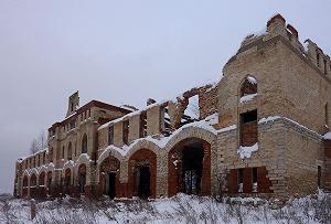 Чуть в сороне от главного дома расположены бывшие конюшни В.Храповицкого. Некоторое время назад здесь вроде бы располагалось общежитие, в котором случился пожар, здание забросили.