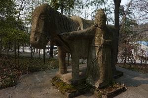 Но вот стволы немного расступаются и показывается обелиск, а за ним - конь, призванный сопровождать прославленного генерала Чанг Ючуня за порогом этого мира. Генерал неожиданно умер в 1369 году, возвращаясь после победы над войсками свергнутой монгольской династии Юань. Первый император новой династии Мин Чжу Юаньчжан похоронил Чанг Ючуня со всеми почестями, снабдив его всем необходимым в загробной жизни.