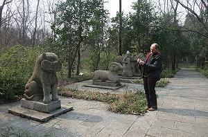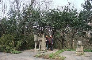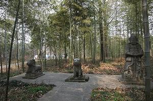Но наш рассказ, как водится, не совсем об этих, в общем то, известных достопримечательностях. Возможно, после их посещения захочется тишины и уединения. Тогда мы рекомендуем поискать гробницы министров императора. Масштаб этих захоронений скромнее, но расположены они в почти безлюдном бамбуковом лесу на склоне горы. В зеленоватом полумраке сквозь стволы бамбука неожиданно проступают каменные фигуры животных, охраняющих покой генерала Чанг Ючуня. Еще одно захороение расположено метрах в стах к северу от него. Живые люди сюда забредают редко.
