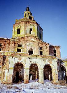 Еще на подъезде к селу виднеются покосившийся купол храма и высокая колокольня. Церковь во имя Дмитрия Солунского была построена, по всей видимости, во второй половине XVIII века. Официальная дата - 1707 год - в литературе оспаривается. Бесспорный интерес и уникальность этого ансамбля в необычном архитектурном решении соединения храма и колокольни. Длинная лесница-пандус на трех арках начинается у подножья колокольни и ведет на второй этаж церкви, по-видимому, в ее летнюю часть, окруженную слегка обвалившимся открытым гульбищем. Восточная часть гульбища также опирается на арочную конструкцию, к сожалению, сильно поврежденную временем. Столь интересный памятник возведен при помещике Нестерове, умершем в 1785 году. Каково было само имение, и как оно было отстроено - неясно. Сохранился лишь возведенный в 20-х годах XIX века небольшой храм в стиле классицизма, бывший по преданию домовой церковью владельцев усадьбы. Барабан-ротонда, некогда венчавший храм, был разобран в 1930-е годы, после чего постройка стала напоминать усадебный флигель. Ныне церковь вновь является действующей и увенчана главкой. Старому храмовому ансамблю повезло меньше. Рядом с ним располагается животноводческий комплекс. Судя по всему, некоторое время назад в самой церкви тоже держали домашний скот. Состояние соответствующее. И все же, архитектурный ансамбль в Нестерове очень интересен, стоит посмотреть на него вживе...