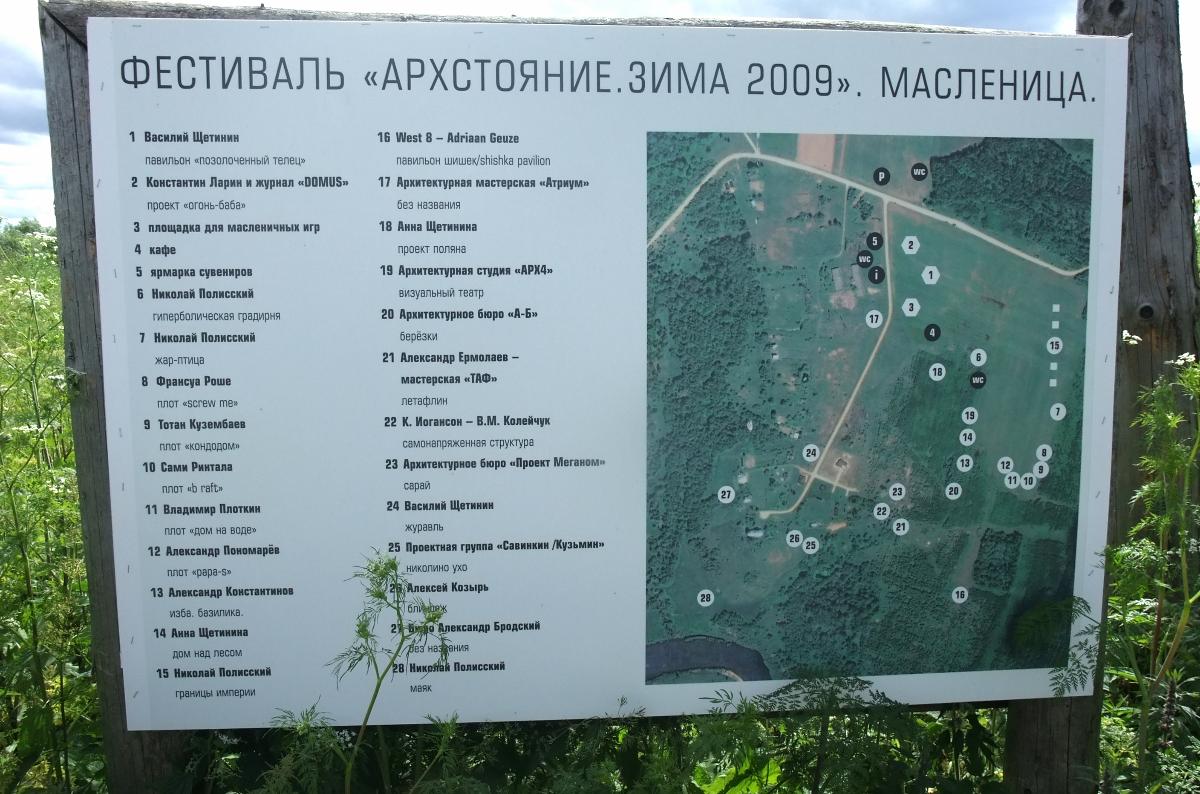 В помощь тем, кто захочет побродить и осмотреть объекты - схема у въезда в деревню Николо-Ленивец. Советуем, изучить план заранее, чтобы не пропустить интересное.