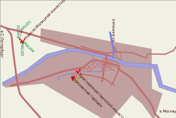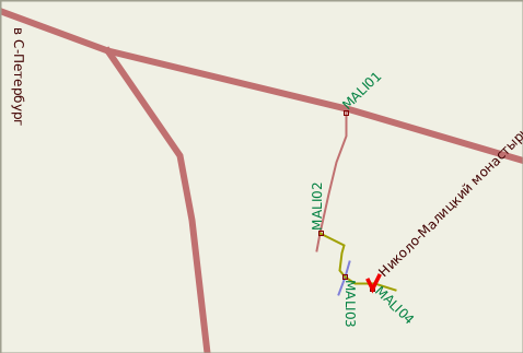 Николо-Малицкий монастырь (точнее, то, что от него осталось) расположен за пределами Твери, левее шоссе на Санкт-Петербург (до его слияния с объездной дорогой). Поворот среди полей на местное шоссе ничем не примечателен, указателей нет. Далее - еще три поворота и мостик через речку (надеемся, приведенная схема поможет сориентироваться)