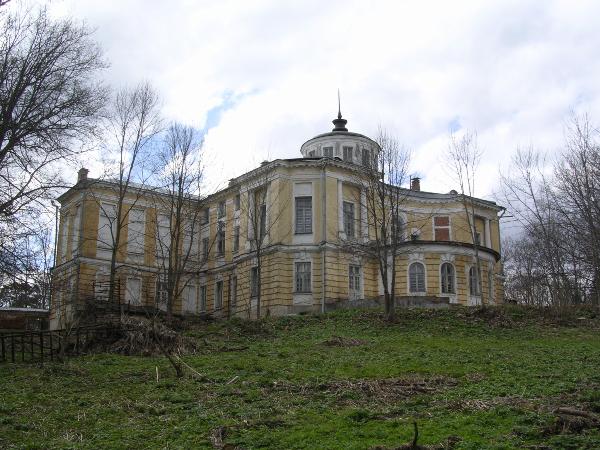 Наружная стена овального зала первого этажа образует апсиду центральной части паркового фасада. Над овальным залом - открытая терраса, по сторонам зала - тоже овальные помещения.