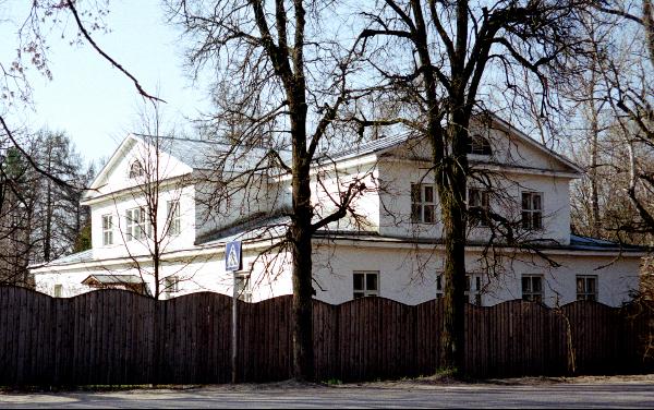 Рядом - типичный московский особнячок рубежа XVIII-XIX веков. Главный фасад украшен небольшим колонным портиком, несущим балкон. Считается, что в этом домике жили владельцы усадьбы во время строительства нового главного дома.