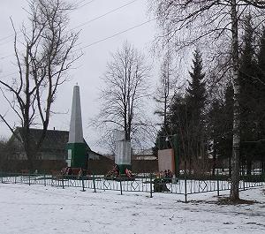 Напротив мемориала - Дом культуры с мемориальной доской, напоминающей о предполагаемом посещении этих мест А.С.Пушкиным.