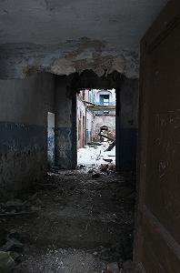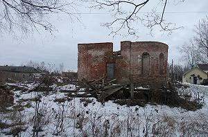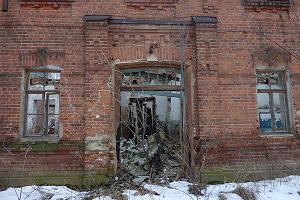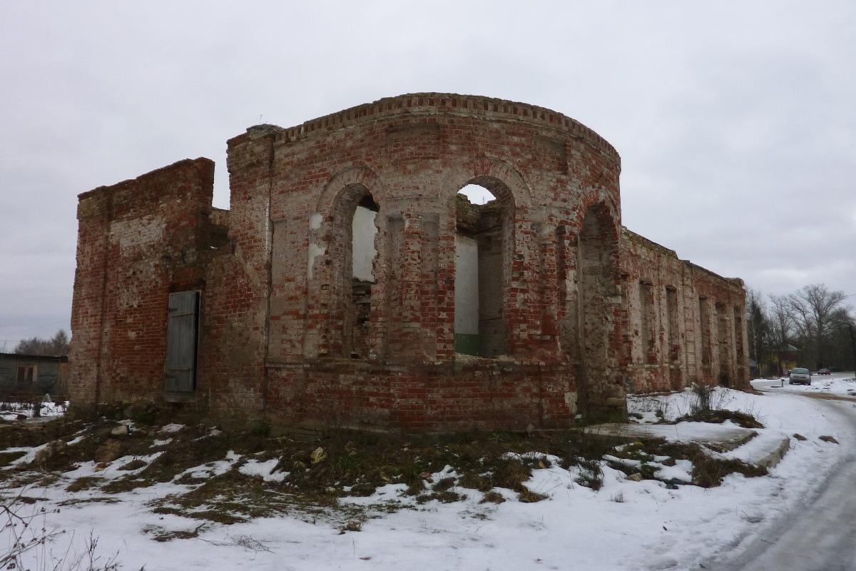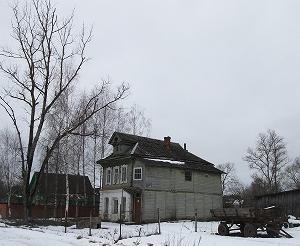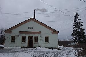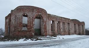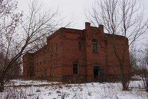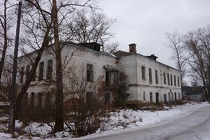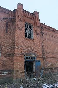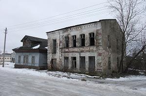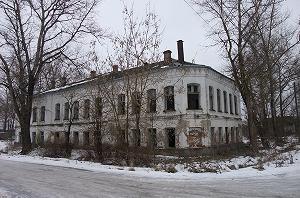 Неподалеку рушится красивое двухэтажное здание, принадлежавшее по-видимому земской больнице. Гармоничное здание со скошенным углом выстроено на рубеже XIX- ХХ веков в формах эклектики.