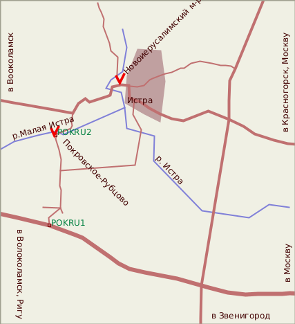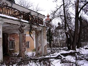 В старину эти места были вотчиной Нащокиных ( с 1616 до конца 1770-х гг.), затем имение перешло к роду Голохвастовых. При них усадьба достигла наибольшего расцвета: во второй половине XVIII - первой половине XIX века здесь сложился архитектурно-парковый ансамбль с церковью, главным домом, флигелями, служебными постройками. От XVIII века остался регулярный парк и здание церкви. В первой половине XIX века Дмитрий Павлович Голохвастов перестраивает усадьбу в стиле позднего классицизма. На новом месте возводится более скромный дом с флигелем в ампирных формах, на береговом склоне Истры появляется пейзажный парк, в целом усадьба становится более камерной. Летом 1829 года сюда, к своему двоюродному брату Д.П.Голохвастову, приезжает погостить А.И.Герцен с отцом. В Покровском-Рубцове при содействии Дмитрия Павловича был решен вопрос о поступлении Герцена в университет, чему его отец сильно противился. После Голохвастовых имение приобретает Савва Тимофеевич Морозов (1890-е годы). Начинается ремонт и перестройка усадьбы. Главный дом объединяют с флигелем, наружное убранство становится более богатым. Да и внутри отделке интерьеров придается большое значение, для чего приглашается друг семьи, талантливый архитектор Ф.О.Шехтель. Позднее, по проекту И.В.Жолтовского, торцы здания были украшены портиками с верандами. В 1903 году сюда в гости к Зинаиде Григорьевне Морозовой, жене владельца усадбы, приезжал А.П.Чехов. Зинаида Григорьевна была женщиной выдающейся, она интересовалась театром, литературой, искусством, философией. Большой известностью пользовался ее литературный салон в Москве. У нее и в Покровском-Рубцове бывали многие знаменитости: В.О.Ключевский, В.И.Качалов, К.С.Станиславский и др. После трагической смерти Саввы Тимофеевича З.Г.Морозова оставила Покровское-Рубцово старшему сыну Тимофею ( у Морозовых было четверо детей), а себе купила новую усадьбу Горки (известные нам Горки Ленинские), где для нее вновь строил Ф.О.Шехтель. Последний владелец Покровского-Рубцова, Тимофей Саввич, окончил, как и отец, математический факультет Московского университета, был членом попечительского совета при Московском старообрядческом институте, входил в совет общины Рогожского кладбища, построил при нем школу. У Т.С.Морозова было три сына, но революция помешала им унаследовать усадьбу. В 1941 году Покровское-Рубцово сильно пострадало от военных действий, но в 1950-е годы постройки были восстановлены. Был зсесь дом отдыха, детский сад, дом культуры с кинотеатром, общежитие... Однако пожар 1999 года привел дом в запустение, уничтожив часть здания. Из других построек усадьбы лучше всего сохранилась Покровская церковь 1745 года, возведенная еще при Нащокиных. Двухэтажный хозяйственный флигель XIX - начала ХХ века после пожара находится в руинированном состоянии. Частично сохранившиеся конюшни и манеж, обезображенные перестойкой, находятся на территории чего-то машино-тракторного, за глухим забором. На этом конном дворе одно время работал ветеринаром Н.Э.Бауман, которого С.Т.Морозов прятал в своей усадьбе от полицейского надзора. В Покровском-Рубцове пока еще цел регулярный, в основном липовый парк с прямоугольной сеткой аллей. Правда деревья здесь очень старые, часть их гибнет,образуя непроходимые завалы. В центре регулярного парка - копанный пруд с островом, где когда-то ст