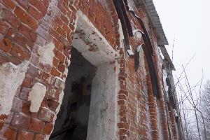 Южная хозяйственная постройка сохранилась лучше, остатки крыши частично защищают от непогоды. Однако в середине крыша уже провалилась.