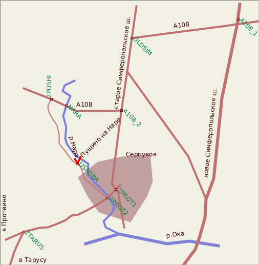 Как-то неожиданно здесь, на окраине Серпухова, смотрятся руины величественного дворца. Весь поселок Пущино на Наре расположен вдоль шоссе, на шоссе смотрит и дворец, вернее, то, что от него осталось. Это воспоминание о былом великолепии - руины, старые деревья...